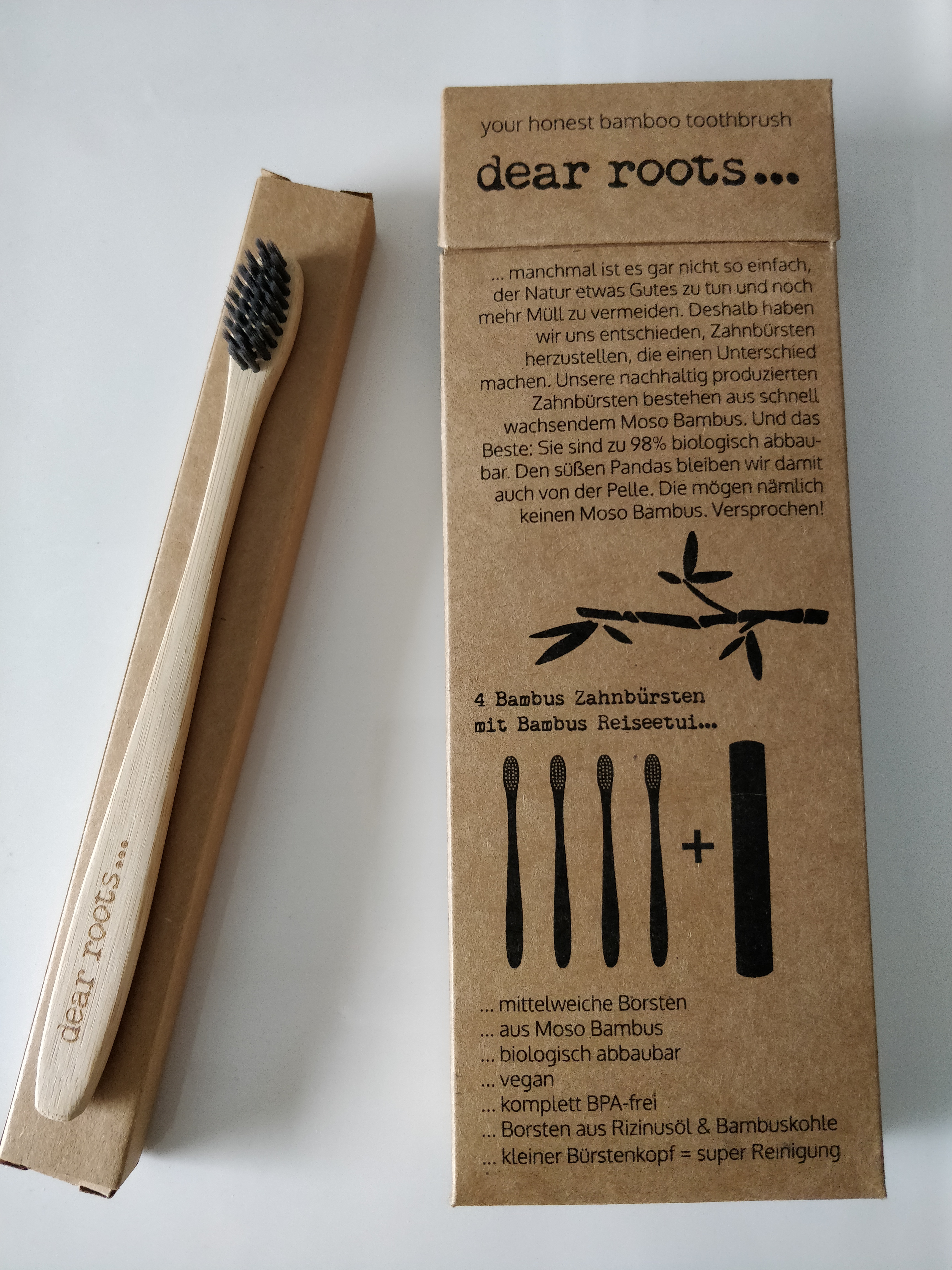 Hier fing die Reise an. Das erste Produkt, das ich gegen eine nachhaltige Alternative ersetzte, war die Zahnbürste. Ich meine, warum eigentlich Plastik? Wo sollte der Unterschied zu einer Zahnbürste aus einem anderen Material sein, etwa aus Bambus? Also habe ich mich für den Kauf der Bambus Zahnbürste von «dear roots…» entschieden. Nach drei Monaten möchte ich euch von meinen Erfahrungen berichten – ein paar Unterschiede gibt es dann nämlich doch!
